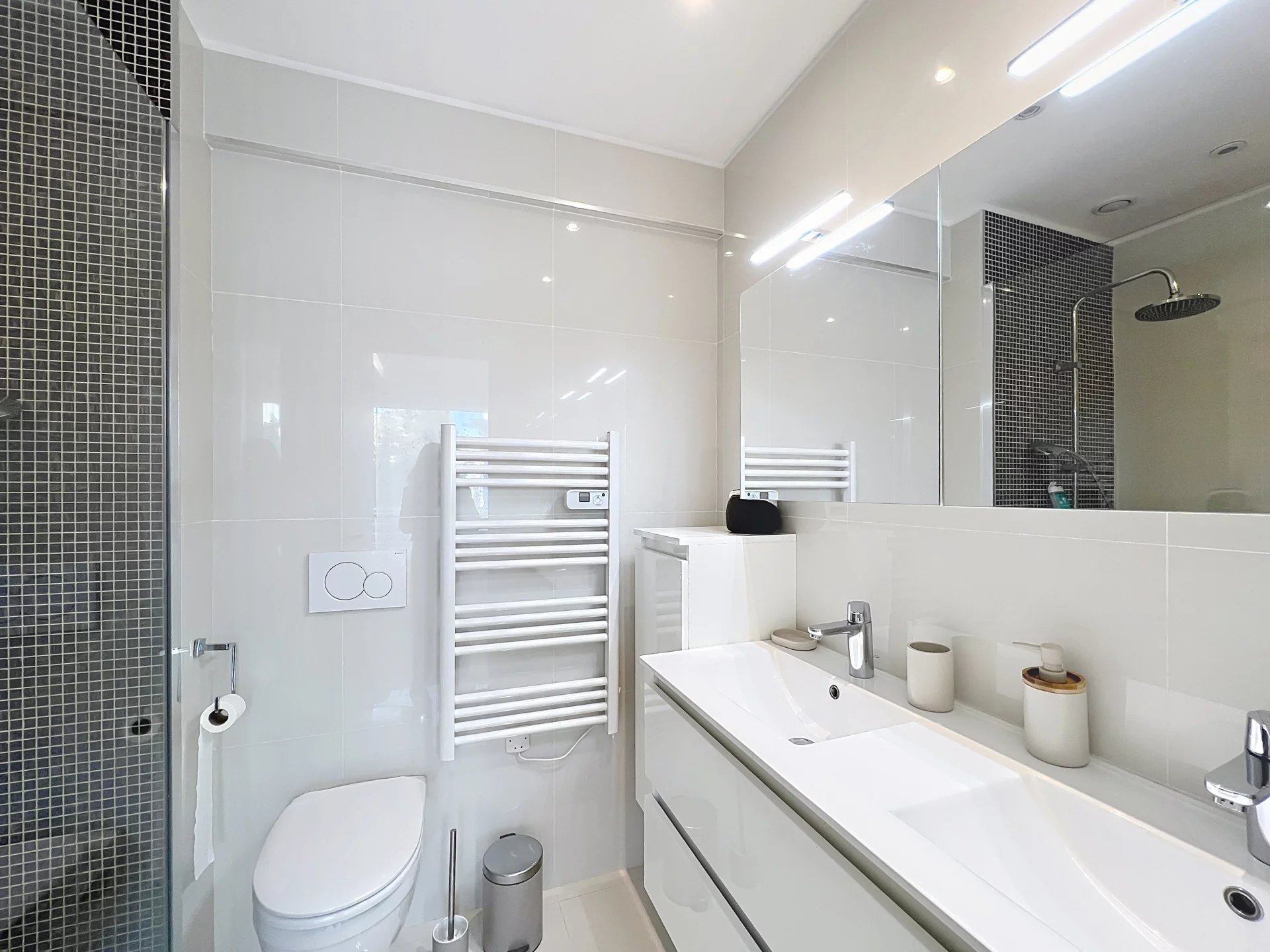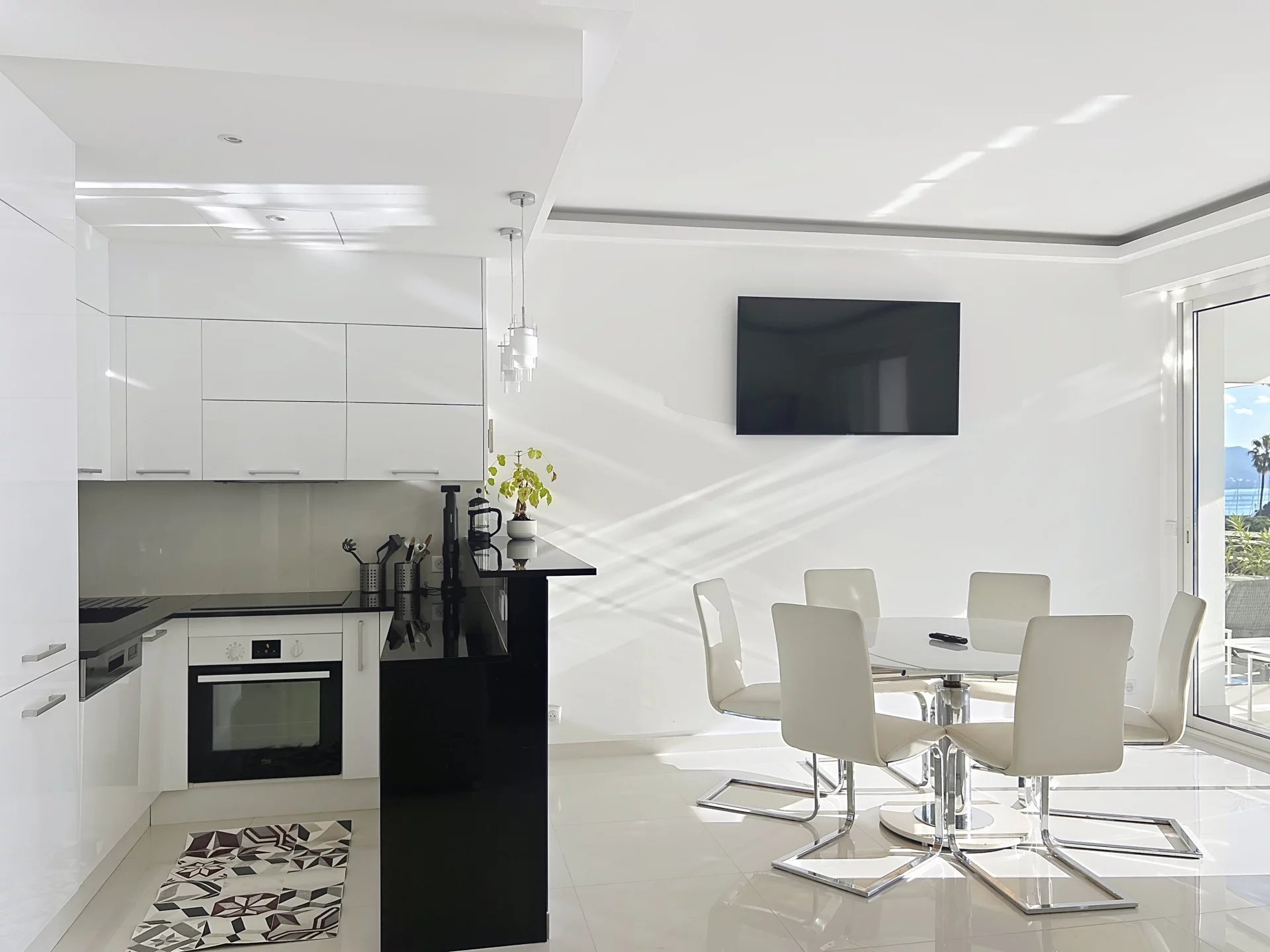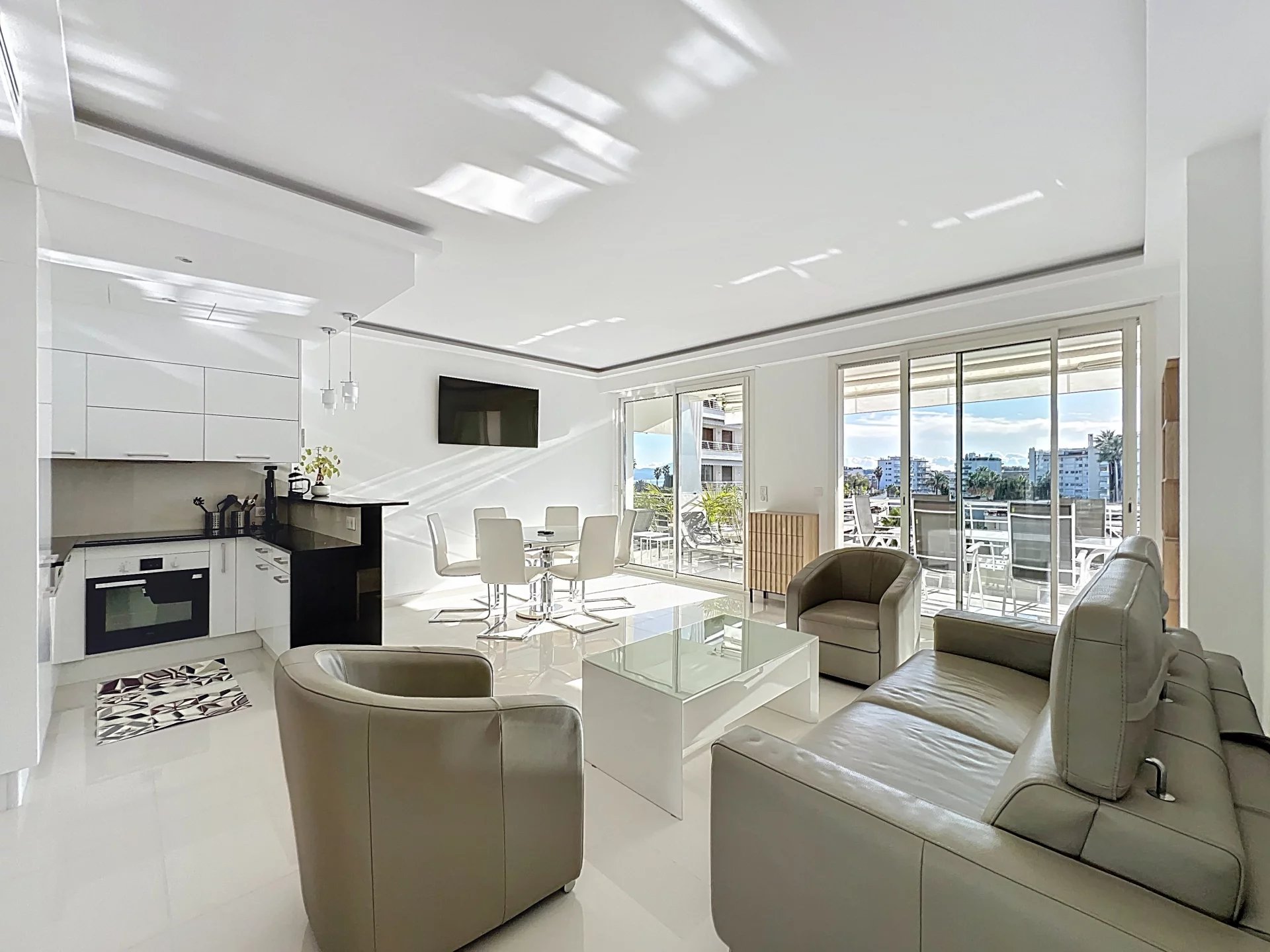 Situated in the district of Palm Beach in a well maintained residence just a stone throw from La Croisette, a recently renovated 2-bedroom apartment of 68sqm composed of a large living-room with open plan kitchen, opening onto a Southwest facing terrace with nice open views and glimpse of sea. A Masterbedroom with a North/East-facing terrace and a shower-room / toilet, and a 2nd bedroom with shower and sink, also opening onto terrace, and a separate toilet.