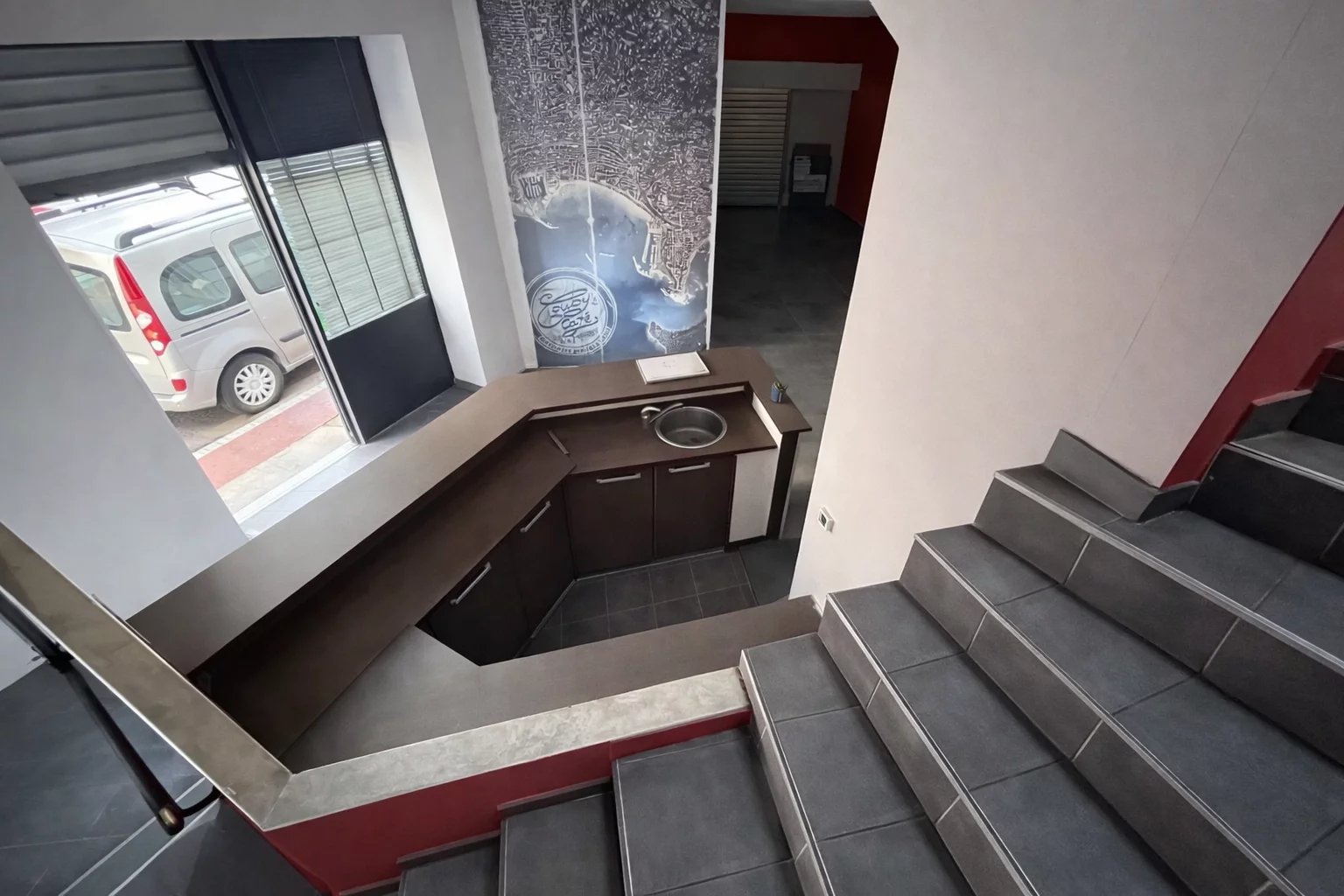 It comprises a vast ground floor with high ceilings and large picture windows overlooking the street.