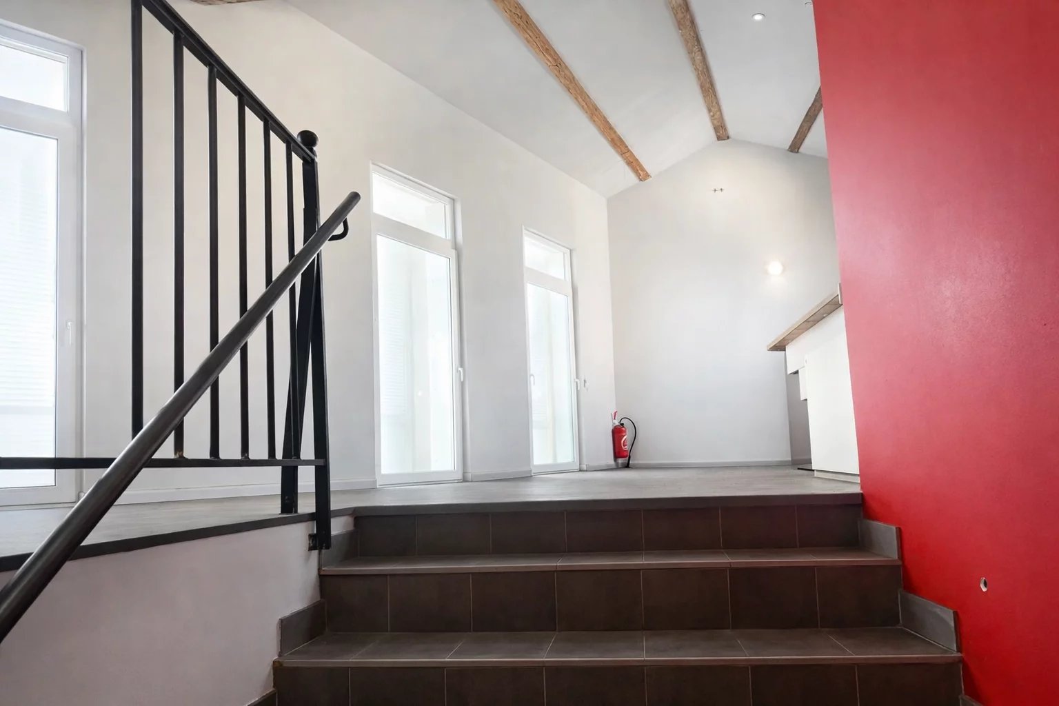 Upstairs, a large, bright room opening onto a balcony.