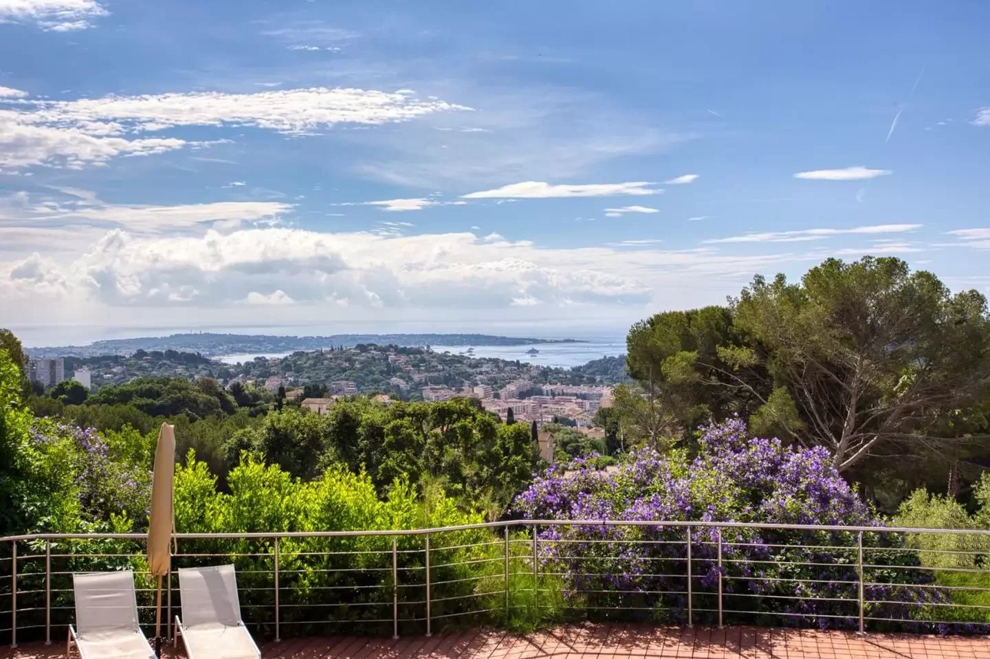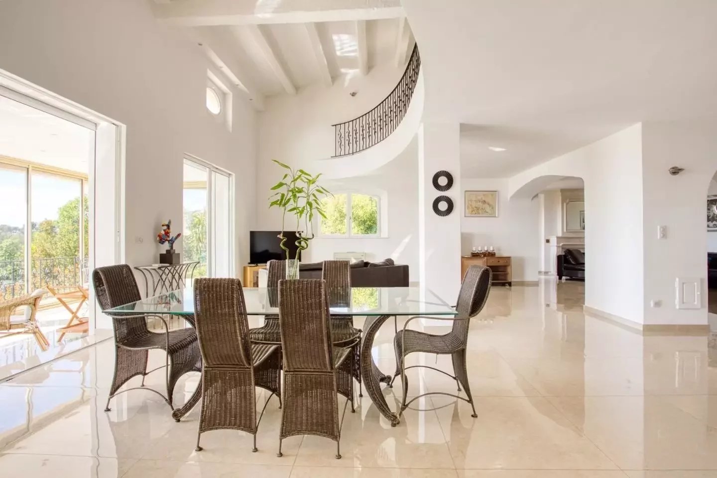 In a dominant position, this villa of 288m² living space enjoying a very beautiful sea view over the Cap d'Antibes is located in a very quiet location, not overlooked and facing south.
