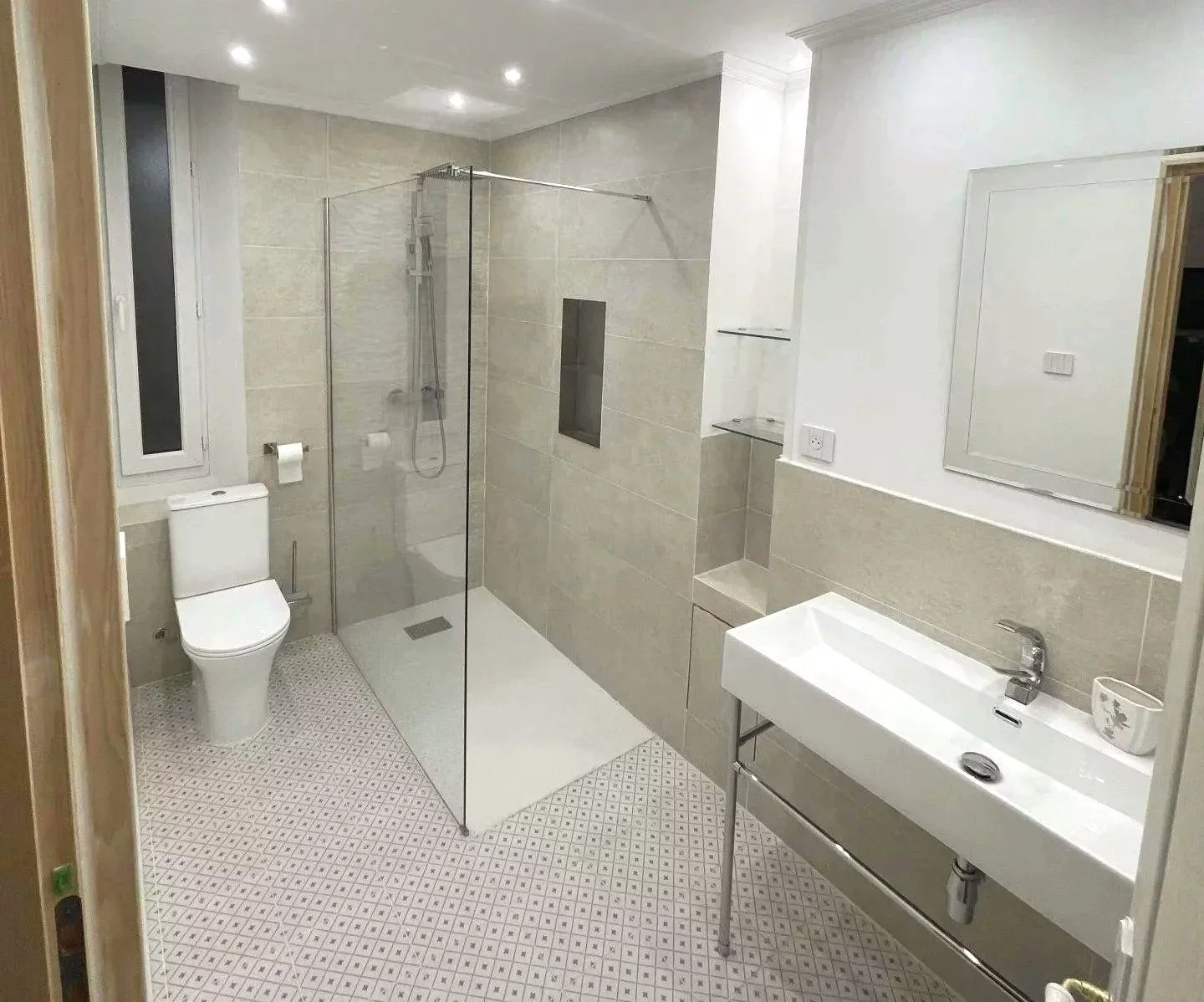 The apartment includes four en-suite bedrooms. On the first level, one en-suite bedroom with a shower room and WC, as well as a second en-suite bedroom with a bathroom and WC.
