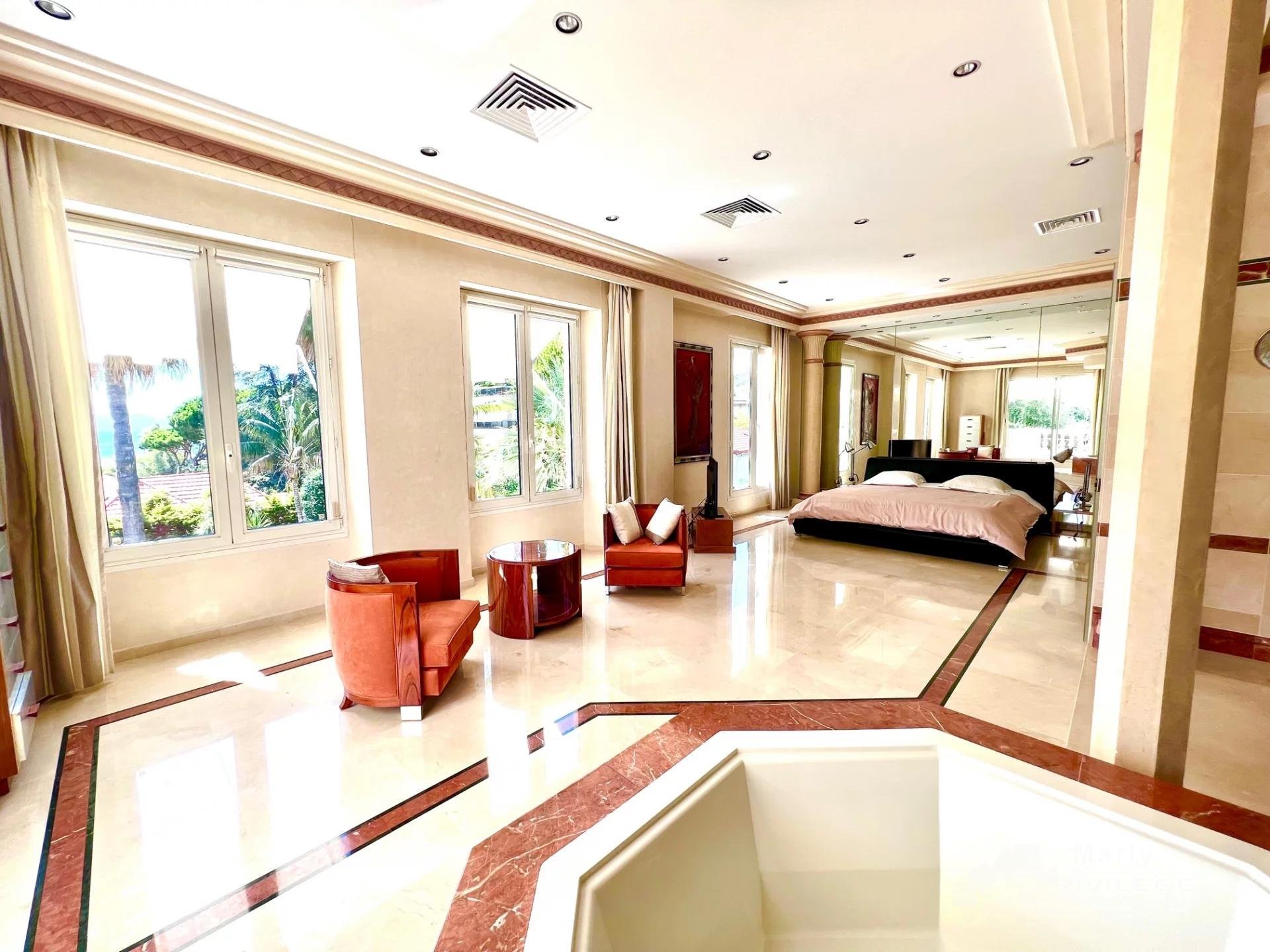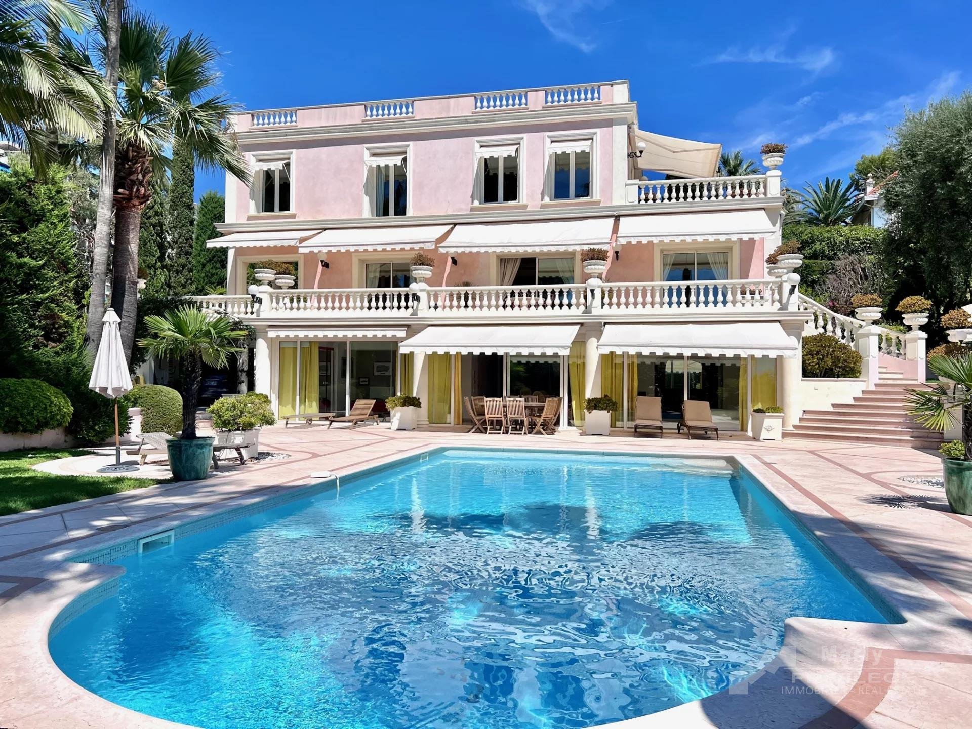 Cap d'Antibes - this splendid luxury appointed Neo-classic property of 430m², situated a few minutes walk from the sea, boasts breath-taking sea views from its terrace on 1st floor. The villa features, on garden level; an entrance-hall, a vast living-room and dining-room, a fully equipped kitchen, and guest toilets.Upstairs; a Master bedroom and 2 other bedrooms, each with bathroom and/or shower-room. In annexe: an independent apartment on garden level opening onto terrace and the pool, with fitted kitchen, 2 bedrooms, shower-room and a separate toilet. Heated pool, pool-house. Garage and parking for 6 cars. Electric gate.