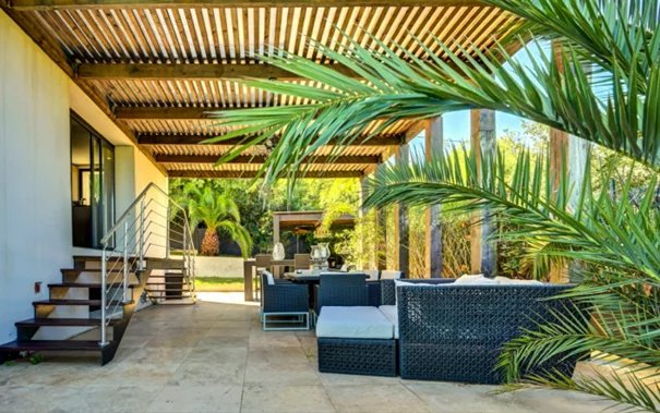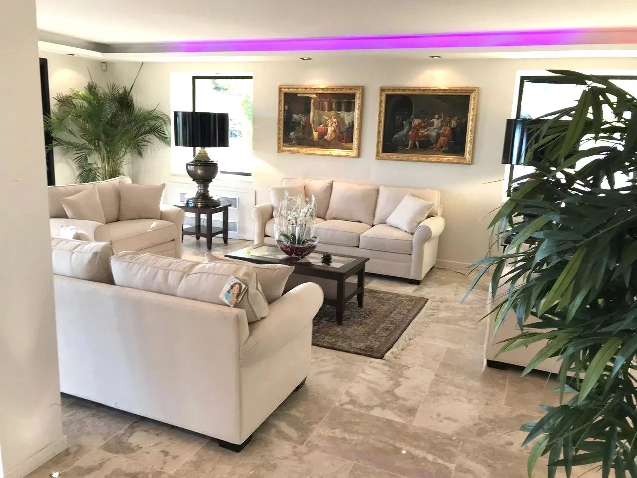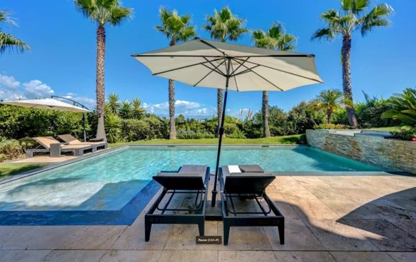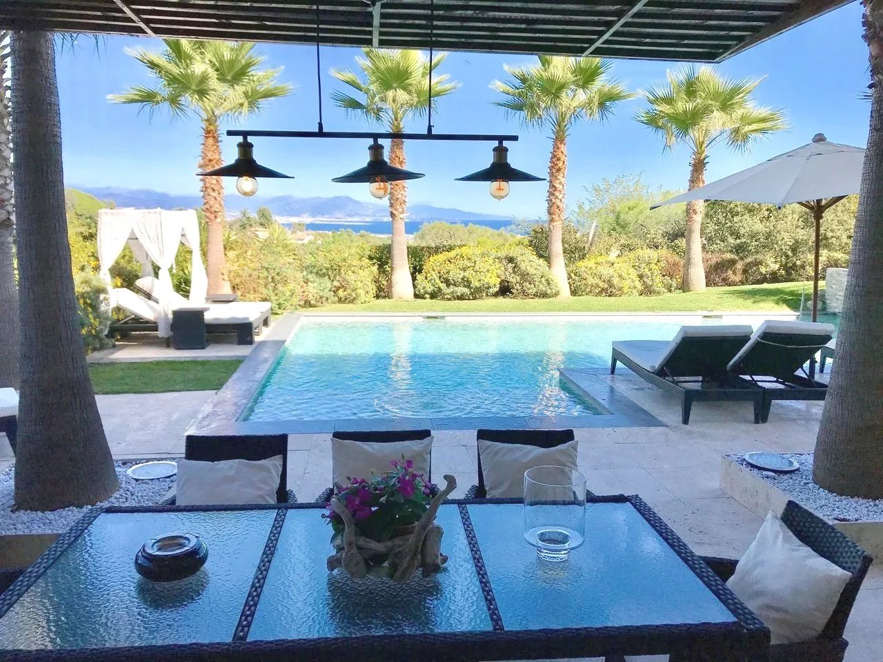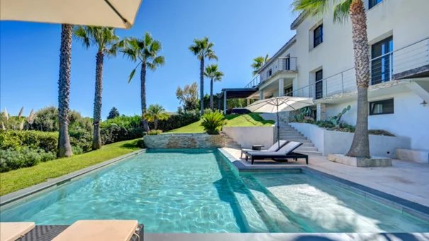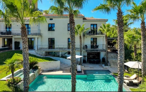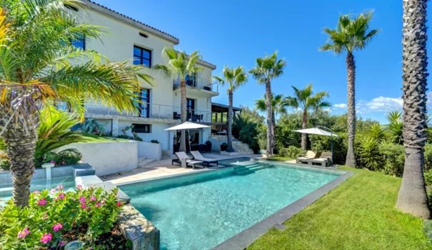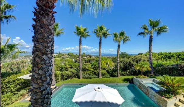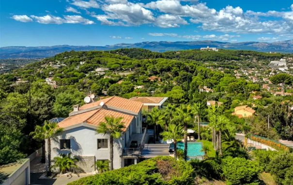 Super Cannes, a magnificently appointed 2 story villa benefitting from a fantastic garden with pool, several terraces and a panoramic view over the sea and the mountains.
