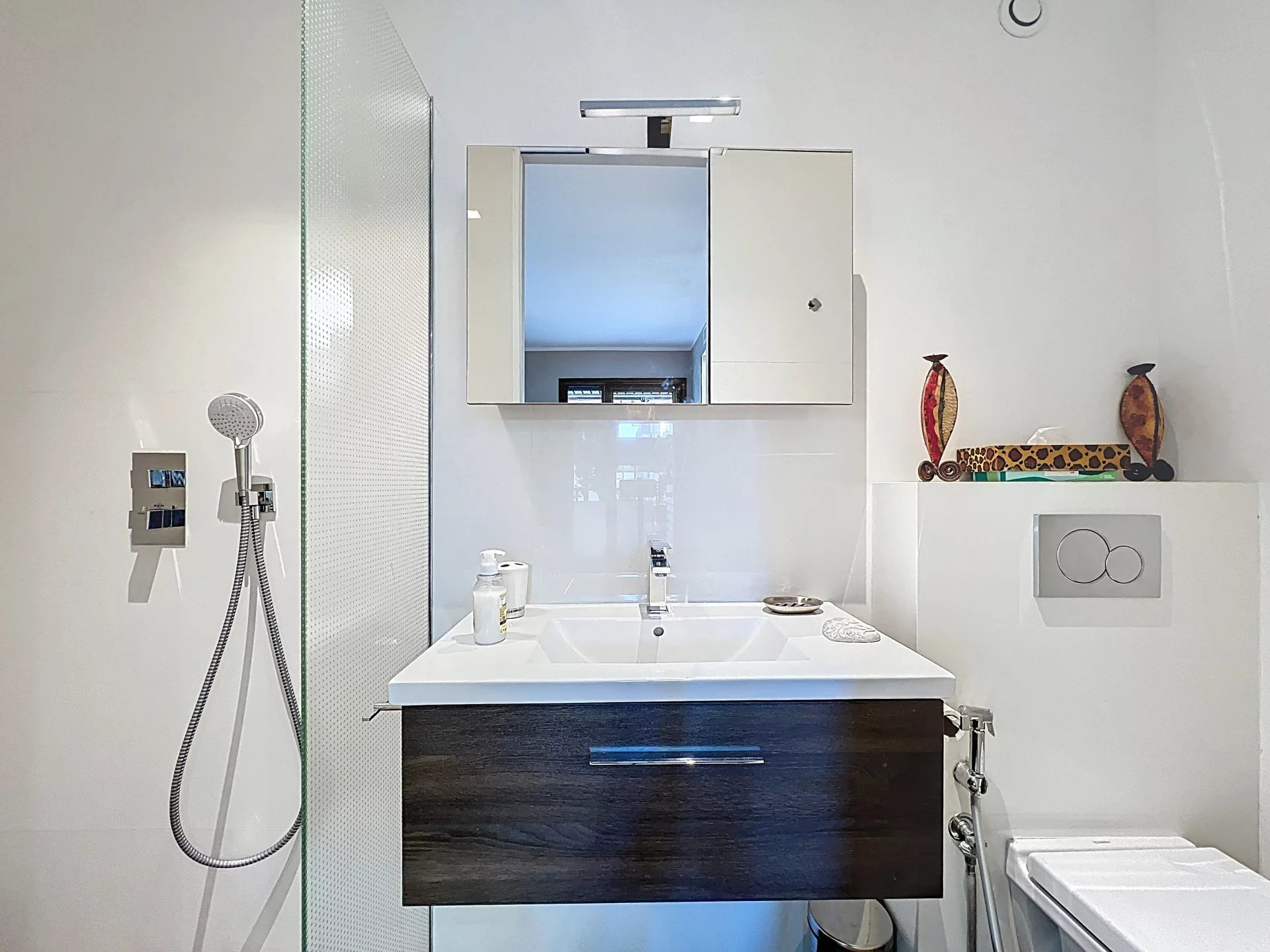 Situé dans une résidence luxueuse entre La Croisette et Rue d'Antibes, emplacement exceptionnel à 2 min du Palais des Festivals; splendide appartement de 107m² avec décoration raffinée. Cet appartement est composé d'une grande entrée desservant un vaste séjour avec coin salon/salle à manger ouvert sur une terrasse d'angle d'environ 50m², d'une cuisine américaine très bien équipée, d'une chambre de maître avec salle de bain/douche/wc et de 2 chambres en suite avec chacune leur salle de douche/wc, ainsi qu'un wc invité.