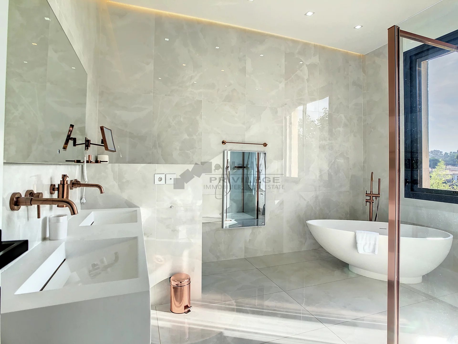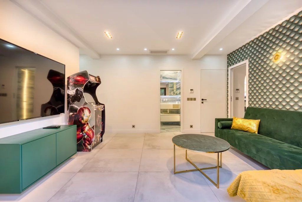 Villa d’époque pleine de charme à pied du centre-ville de Cannes, implantée sur un joli terrain arboré de 600 m² avec piscine. Entièrement rénovée en 2021 elle offre aujourd’hui de luxueuses prestations avec tout le confort moderne et un style artistique unique. Dès l’entrée vous découvrirez un spacieux séjour avec son salon disposant d’un mini bar, sa salle à manger et une grande cuisine.