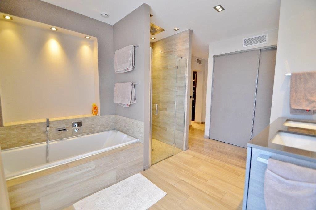 - chambre de 35m2 avec salle de bain, douche, baignoire, wc et dressing donnant sur la piscine