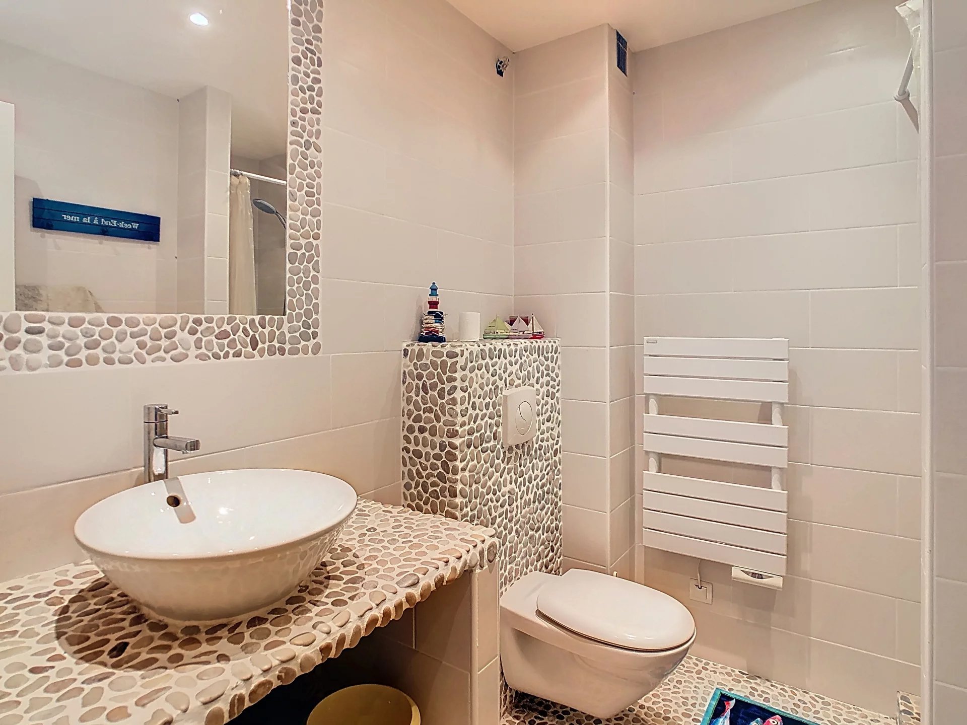 Dans un domaine fermé au calme en 2ème ligne Croisette, quartier Port Canto, proche des plages et de toutes les commodités beau Studio exposé Est dans une petite résidence, comprenant : entrée, séjour avec kitchenette donnant sur terrasse, salle de douche avec toilettes. IDÉAL PIED A TERRE.
