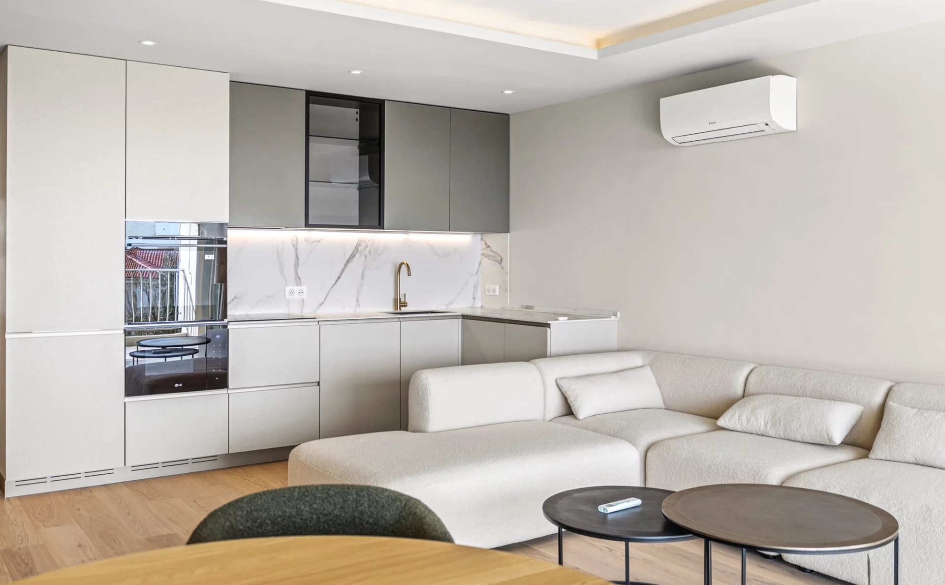 Il se compose d’une entrée avec placard, d’un vaste séjour avec cuisine moderne entièrement aménagée, de deux chambres avec dressing, d’une élégante salle de douches à l’italienne et d'un WC indépendants.