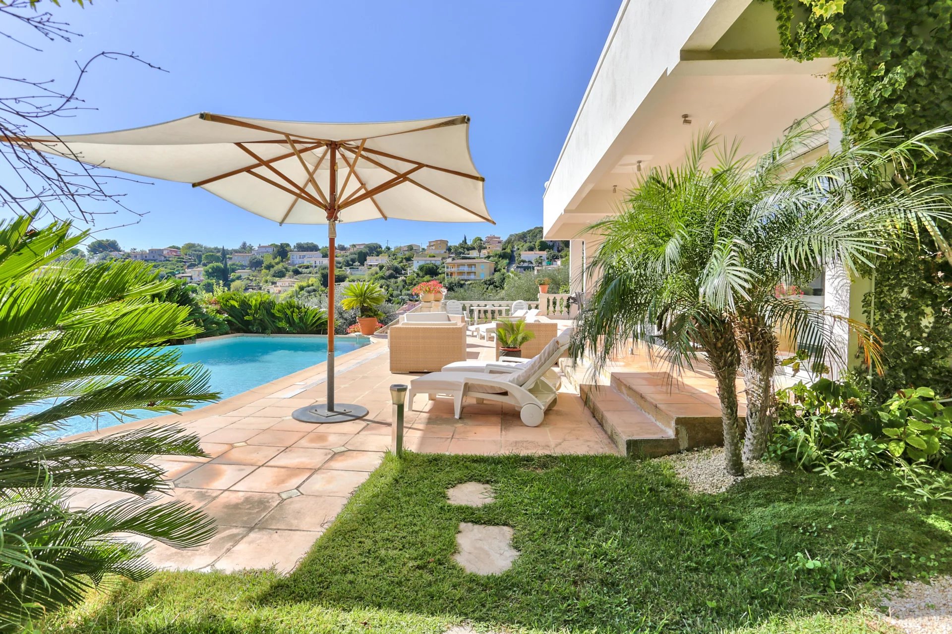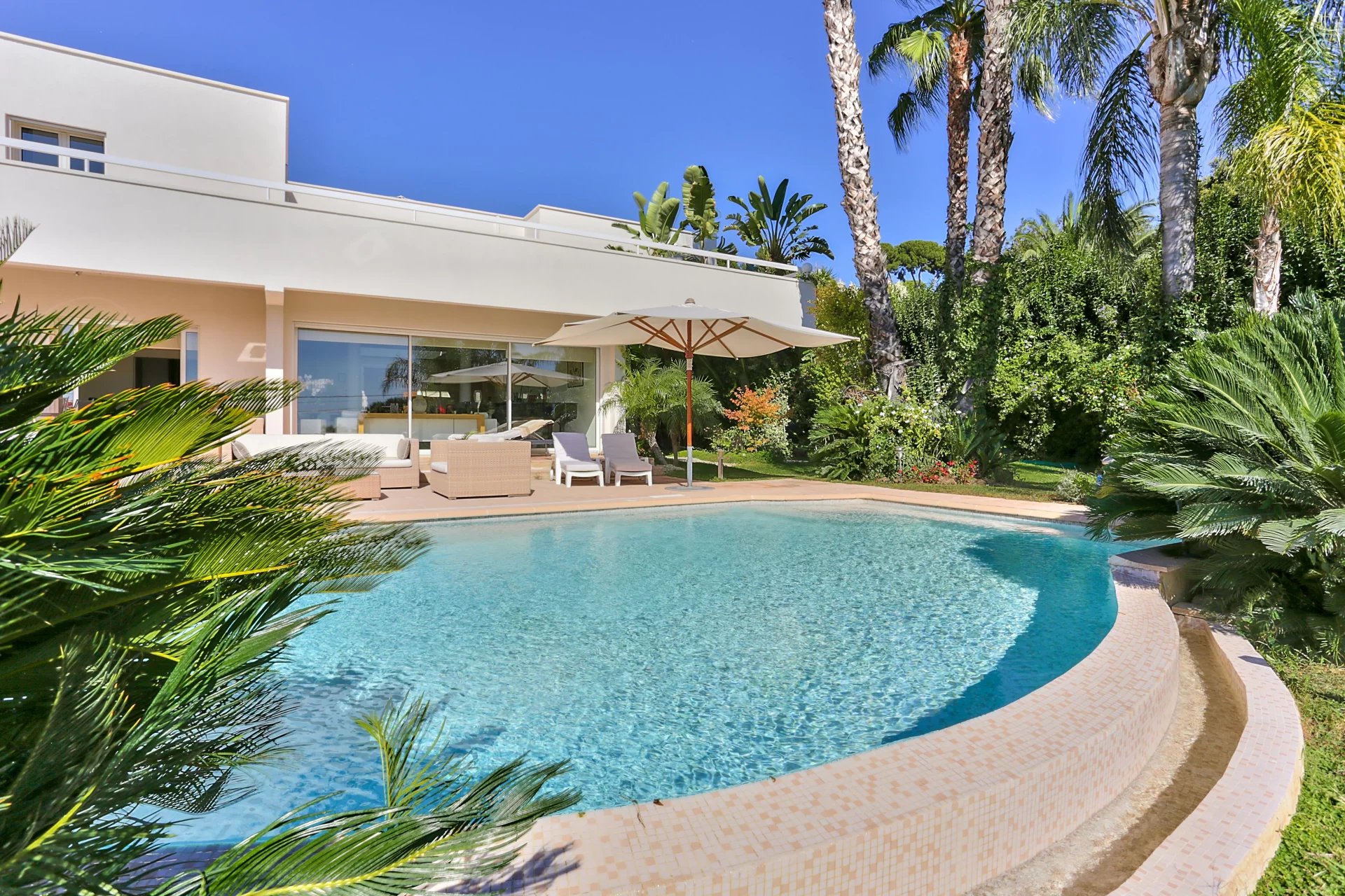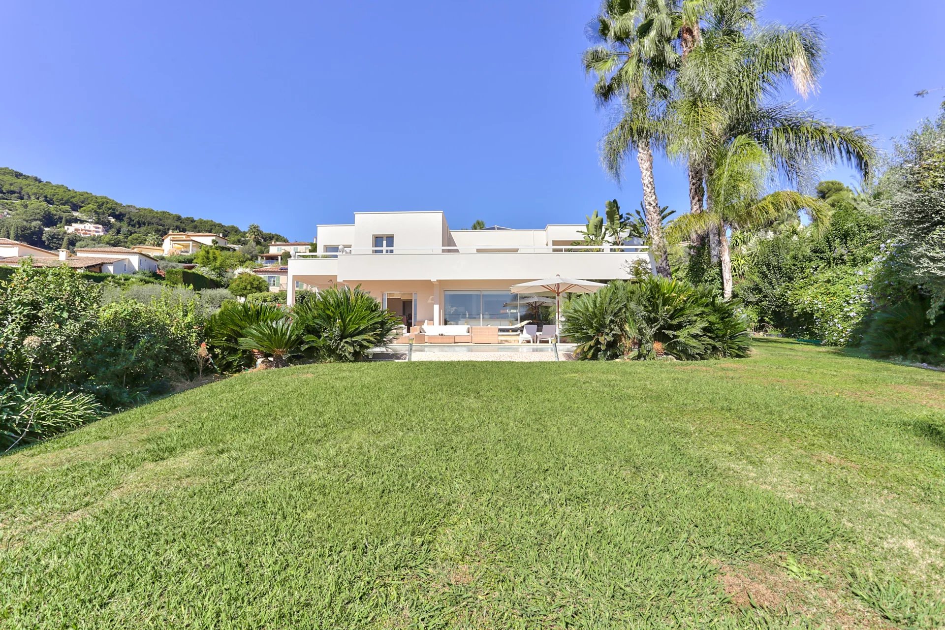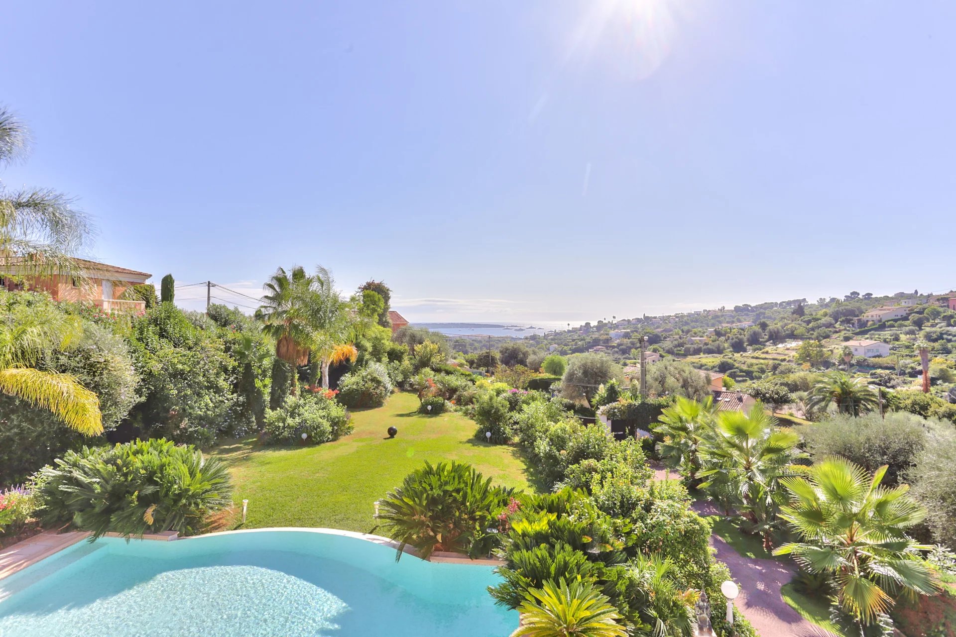 Agréable villa californienne de 220m² au calme absolu et bénéficiant d'une superbe vue mer et collines, cette villa est située sur les hauteurs de Golfe Juan sans vis - vis à 15mn de Cannes et 10mn de Juan les Pins et des plages. Superbe jardin plat plein sud de 1940m². Hall d'entrée sous une pyramide de verre, grand séjour salle à manger, cuisine indépendante, chambre avec dressing et salle de bains. Belle terrasse donnant sur piscine à débordement et jardin paysager avec vue mer. A l'étage, chambre de maître, 2 autres chambres, 2 salles de bain, 1 salle d'eau. Grande terrasse solarium à l'étage avec vue panoramique mer. Grand garage et cave d'une superficie totale de 174m² et exploitable. Parkings.