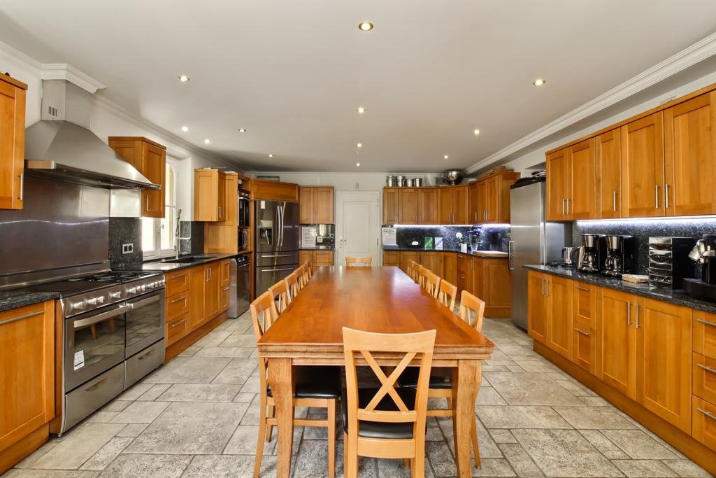 Эта трехэтажная вилла включает в себя просторные прихожую, гостиную, столовую, бильярдный зал и рабочий кабинет /библиотеку, а также большую кухню с профессиональным оборудованием. 2 мастер-спальни в сьюте с гардеробной, салоном, ванной и небольшой кухней, 7 спален, 5 ванных и одна душевая. ТВ-зал, дом охранника и несколько гаражей.